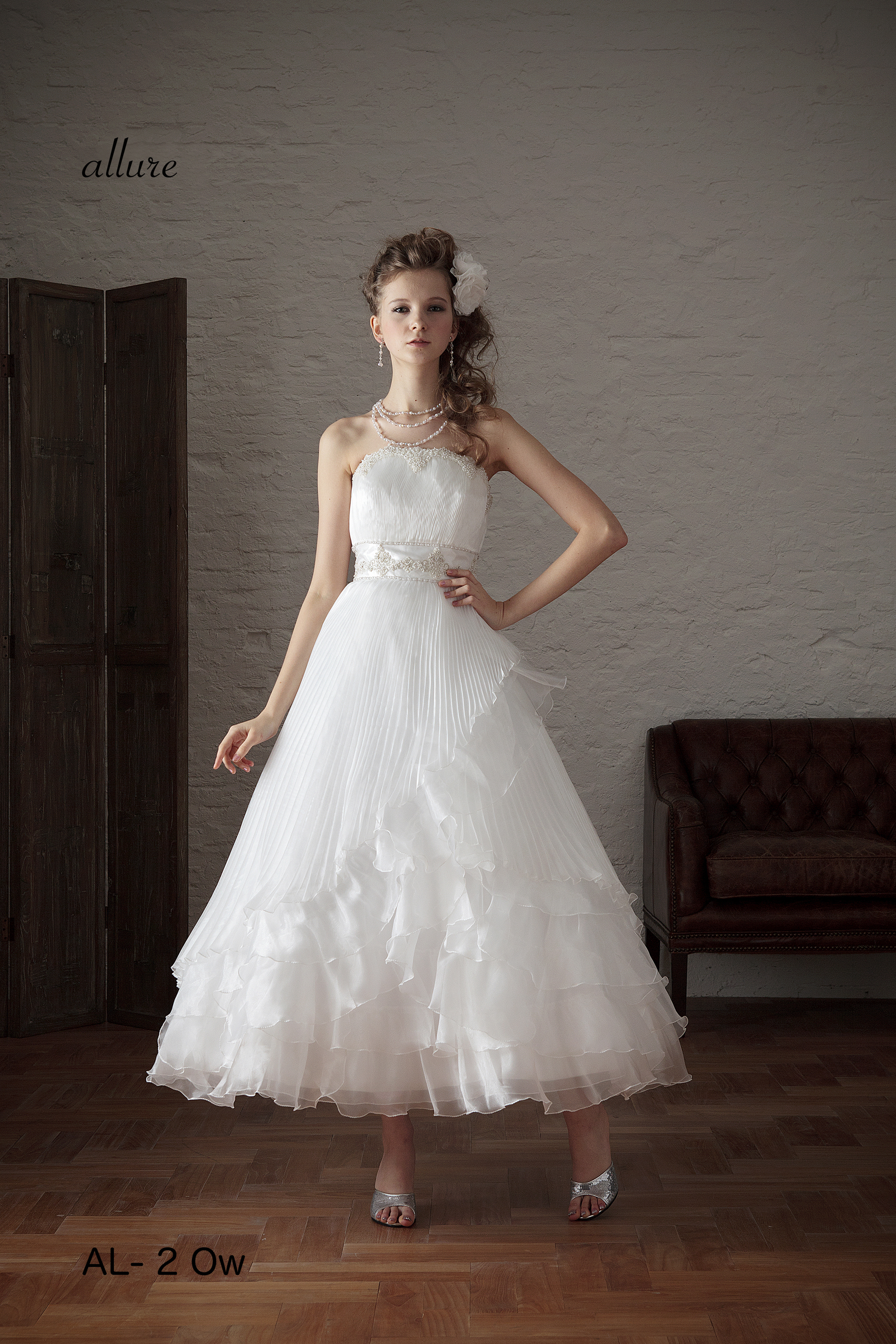 光沢のあるプリーツオーガンジーが華やかさを演出します。
