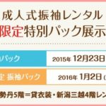 こんにちは クリスマスで賑わう三越です いよいよ本日から 歳末限定振袖パックが登場です 54,000円と108,000円セットをご用意いたしました 新潟三越店では各10セ…